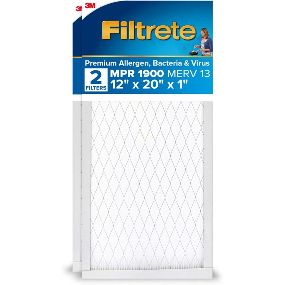Filtrete 16x25x1 AC Furnace Air Filter, MERV 13, MPR 1900, Premium Allergen, Bacteria&Virus Filter, 3-Month Pleated 1-Inch Electrostatic Air Cleaning Filter, 2-Pack (Actual Size 15.719x24.72x0.78 in)(12x20x1)
