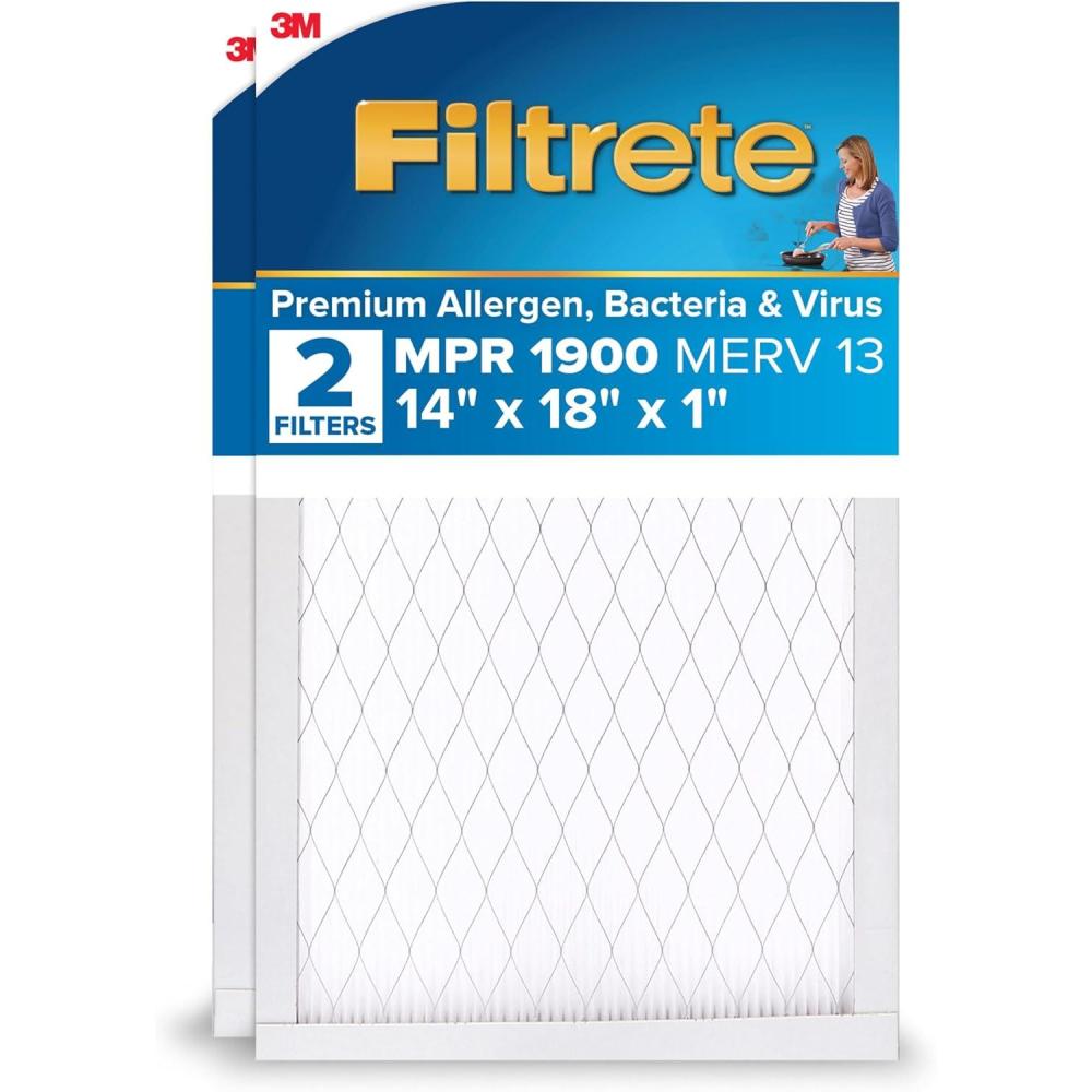 Filtrete 16x25x1 AC Furnace Air Filter, MERV 13, MPR 1900, Premium Allergen, Bacteria&Virus Filter, 3-Month Pleated 1-Inch Electrostatic Air Cleaning Filter, 2-Pack (Actual Size 15.719×24.72×0.78 in)(14x18x1)