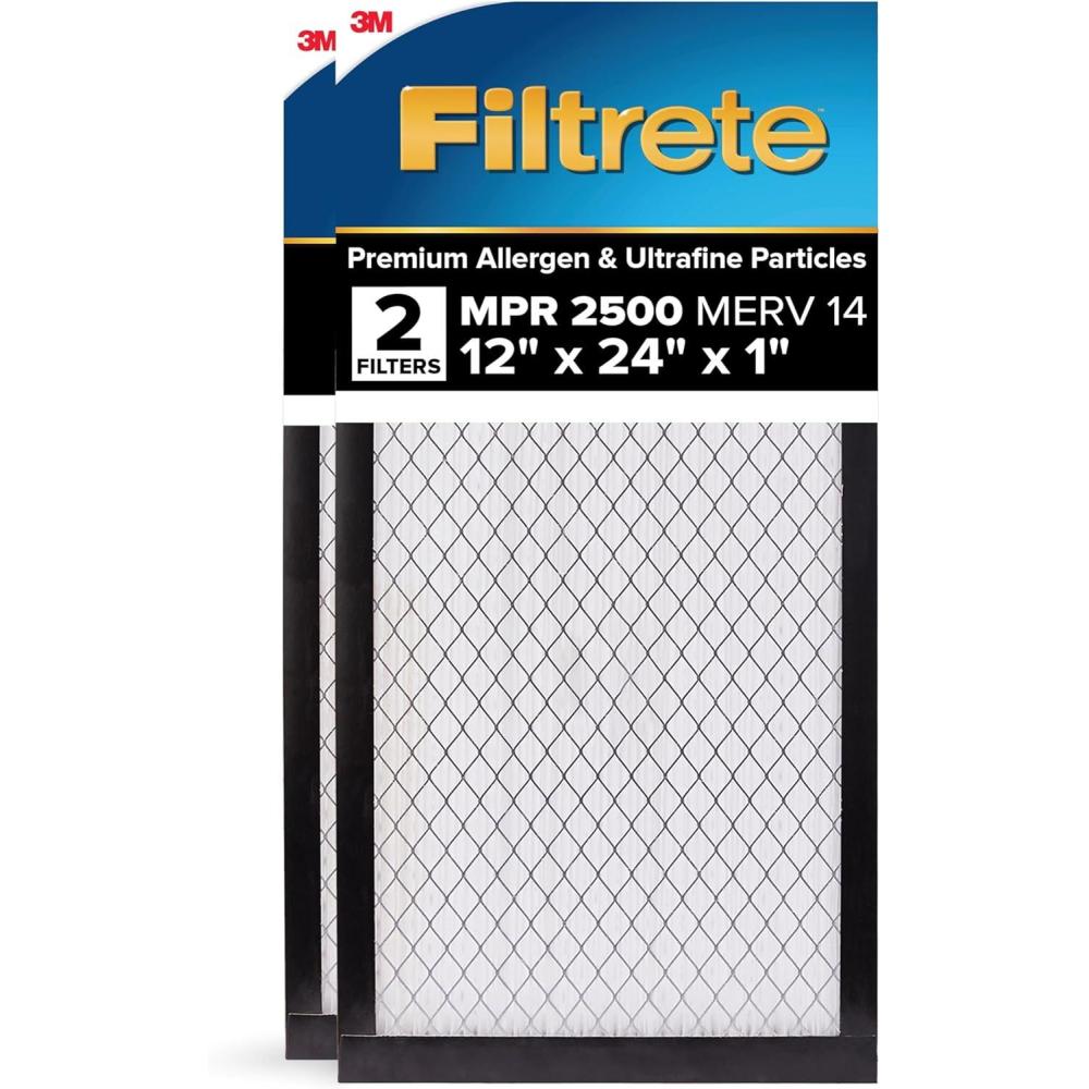 Filtrete 16x25x1 AC Furnace Air Filter, MERV 14, MPR 2500, Premium Ultra Fine Particle, 3-Month Pleated 1-Inch Electrostatic Air Cleaning Filter, 2-Pack (Actual Size 15.69 x 24.69 x 0.81 in)(12x24x1)