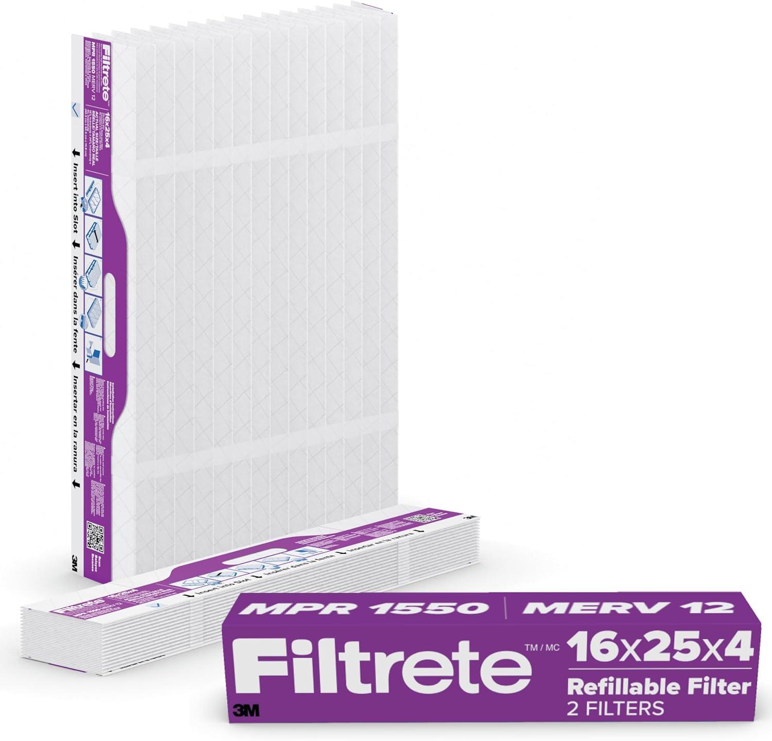 Filtrete 16x25x4 Refillable Air Filter replacement, MPR 1000, MERV 11, Allergen Defense, 2 Pack, use with reusable air filter frame of Filtrete Refillable Air Filter Kit 16x25x4, for HVAC, Furnace, AC(16x25x4)