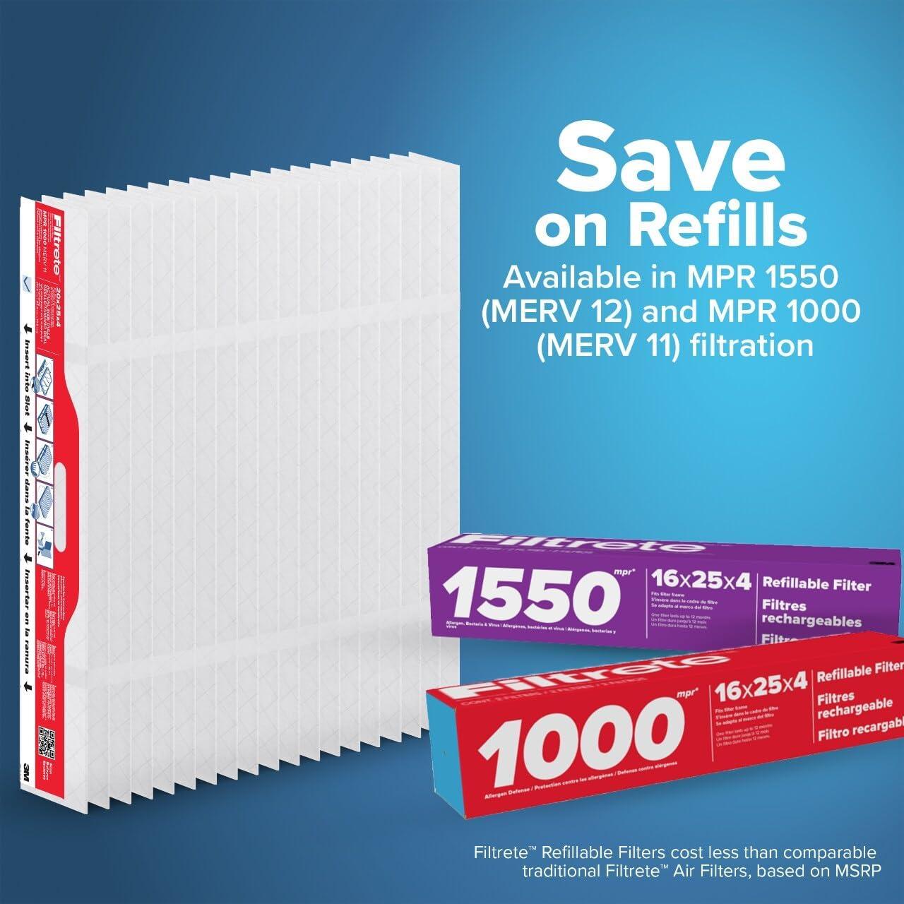 SAVE ON REFILLS: Filtrete Refillable Air Filter refills cost less than comparable traditional Filtrete MPR Air Filters, based on MSRP
