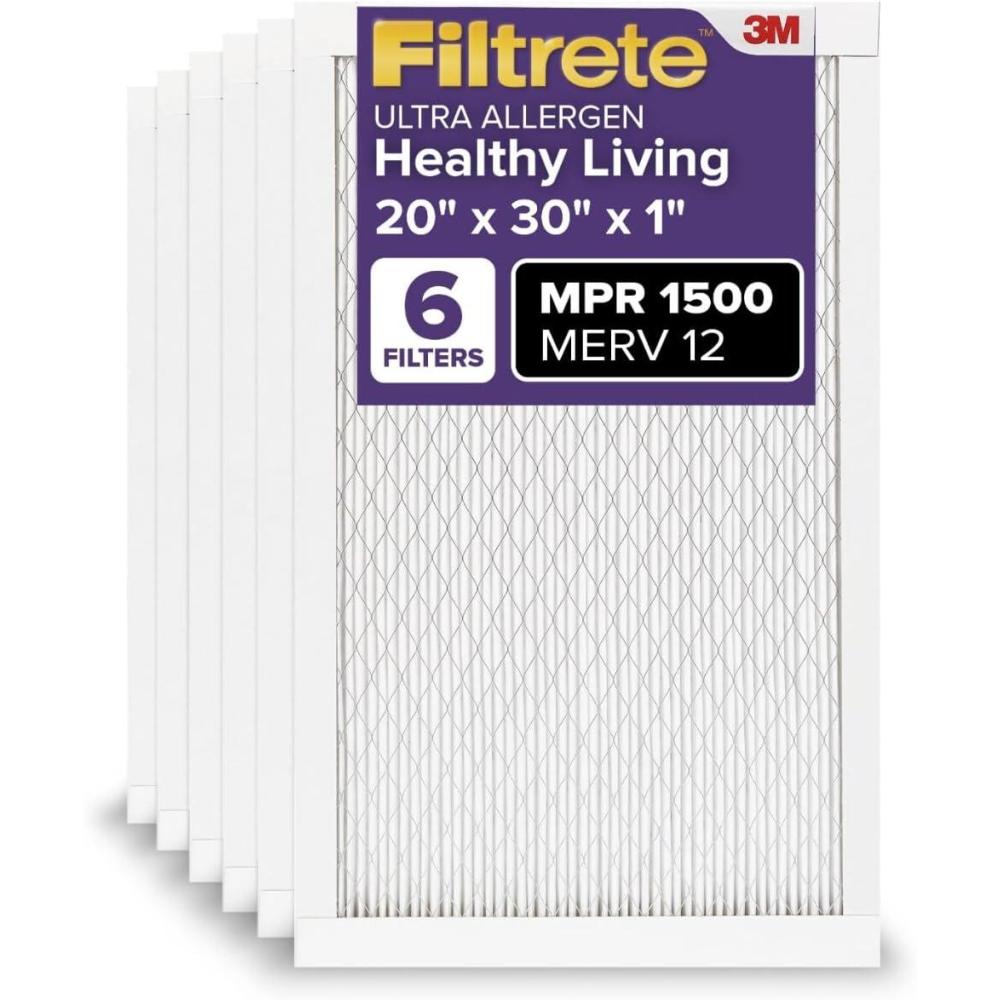 Filtrete 20x25x1 AC Furnace Air Filter, MERV 12, MPR 1500, CERTIFIED asthma & allergy friendly, 3 Month Pleated 1-Inch Electrostatic Air Cleaning Filter, 6-Pack (Actual Size 19.69x24.69x0.78)(20x30x1)